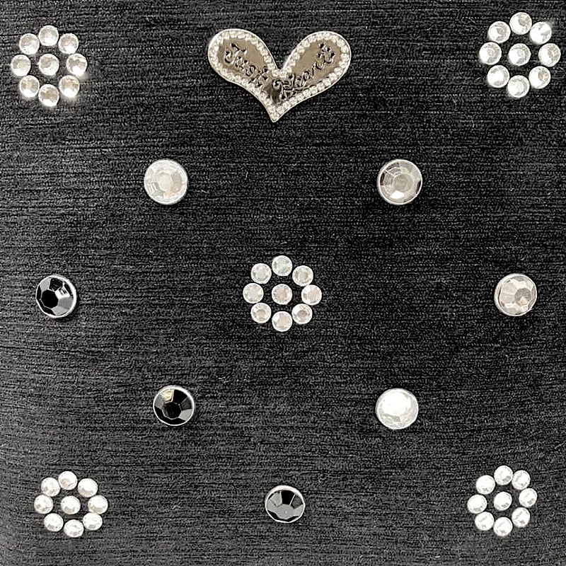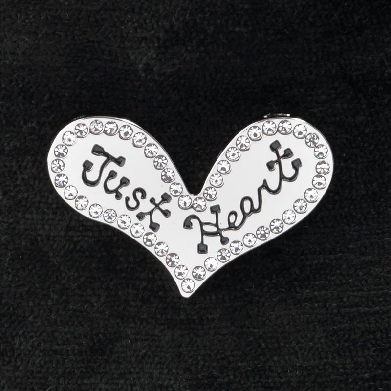 ラインストーンで縁取ったシルバーのJust Heartロゴ入りプレートが、煌めきをプラス。