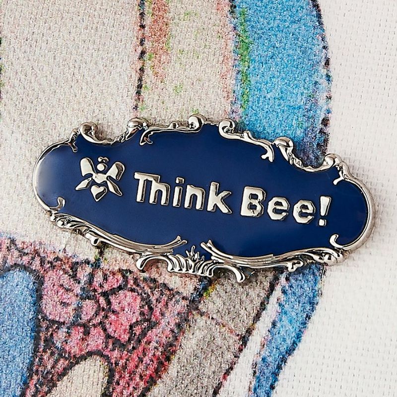 ネイビーのThink Bee!ロゴ入りプレートやブルーのファスナーがアクセントになっています。