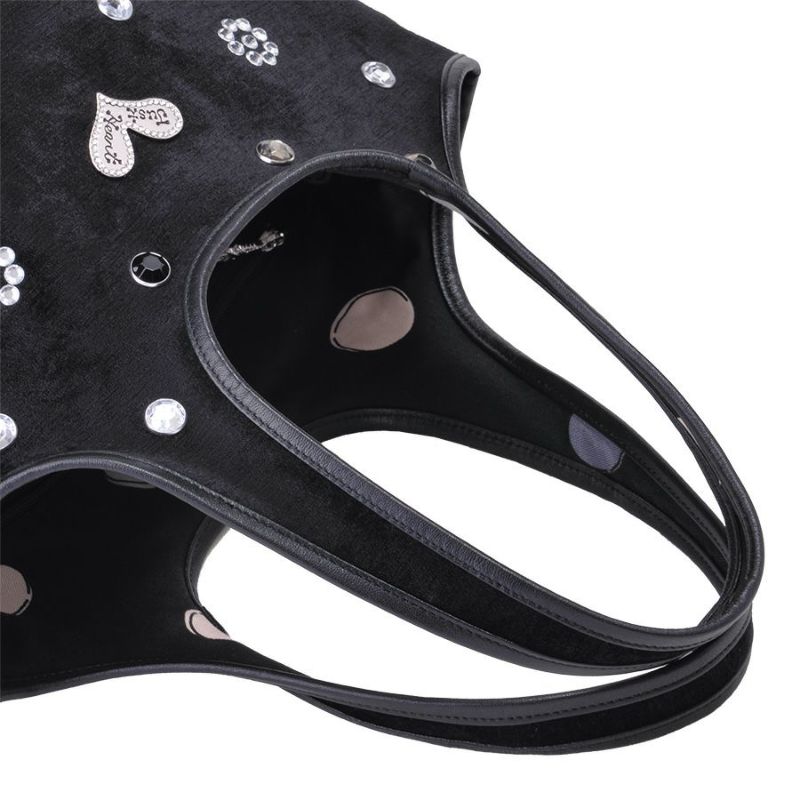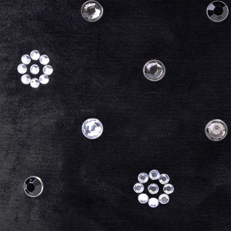 柔らかなブラック地に大粒のラインストーンとスタッズを並べたデコレーションを施しました。背面にも装飾をあしらい、どこから見ても可愛らしい仕上がりに。