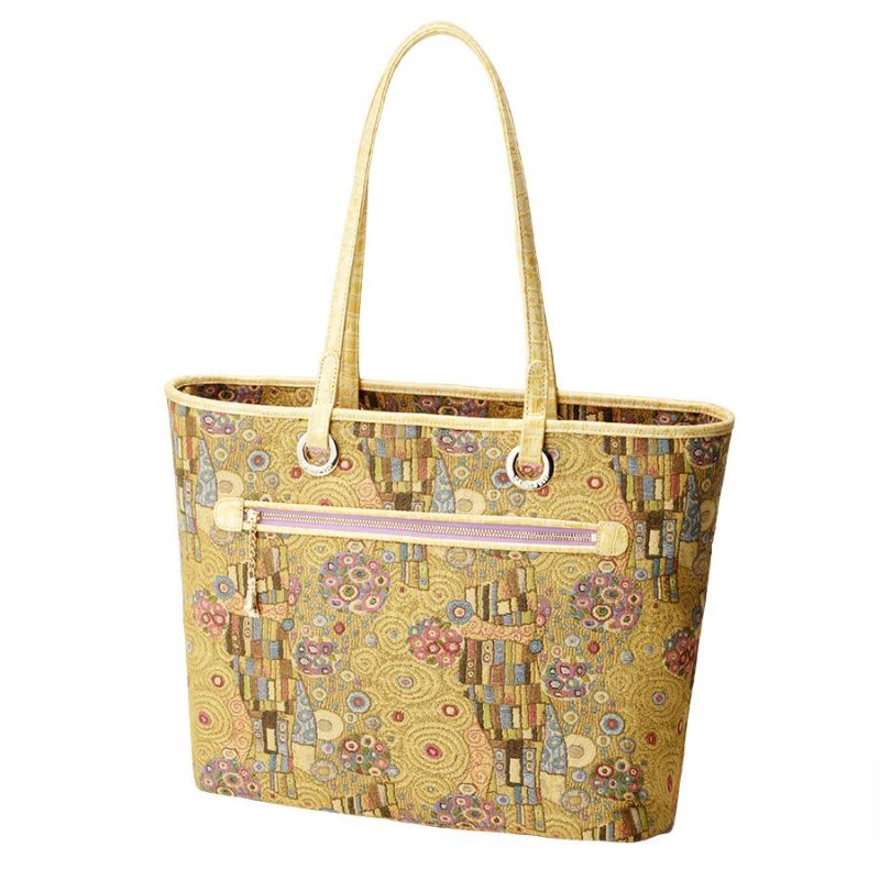 オーストリアが誇る画家、グスタフ・クリムトの代表作「接吻」をモチーフにした、アート作品を持ち歩くようなショルダートート。色彩豊かな美しいデザインを堪能できるよう、シンプルな形に仕上げました。