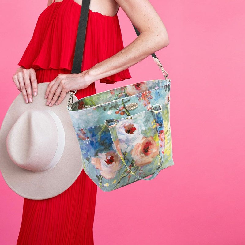 油彩タッチで描かれた大胆な花柄トート