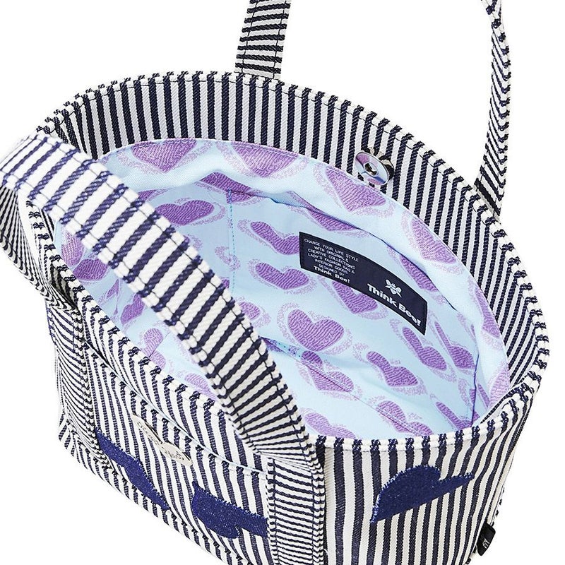 裏地はライトブルー地にパープルのハート柄で爽やかに、ストライプのヒッコリーとの相性も抜群。