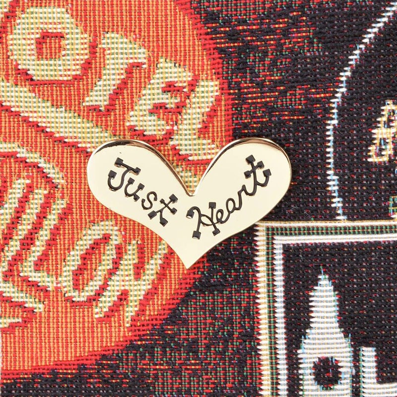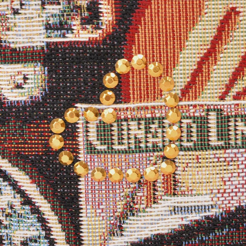 奥行き感がある人気の織生地に、アクセントとしてゴールドのホットフィックスでかたどった、ロゴのハチマークやハートモチーフを配して、より個性的に仕上げました。