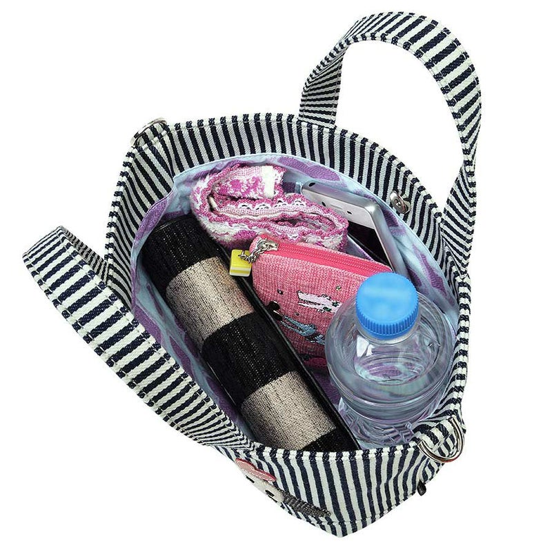 マチ幅が広く、財布やメイクポーチなどの必需品はもちろん、お弁当箱などの幅のあるものも入れやすい形です。