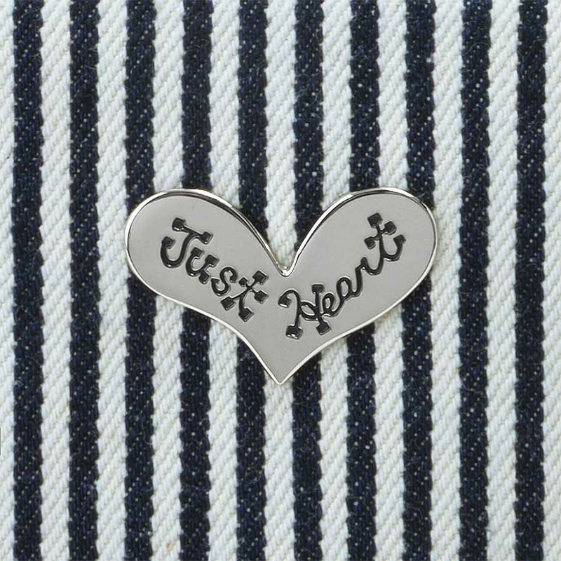裏地のライトブルー×パープルのハート柄生地がヒッコリーと爽やかなコンビネーション。
