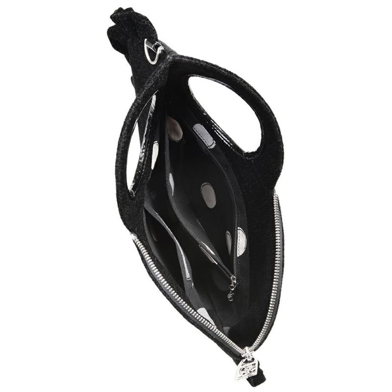 少し小さめの円形くり抜き型のハンドルは、エナメル素材のパイピングで光沢をプラスして印象を引き締めました。