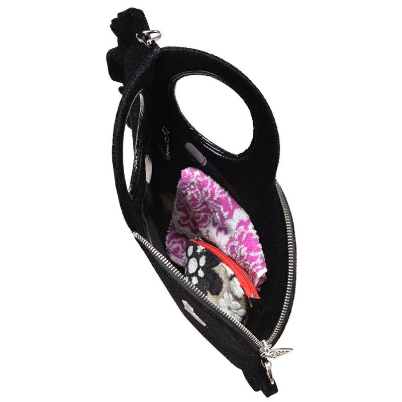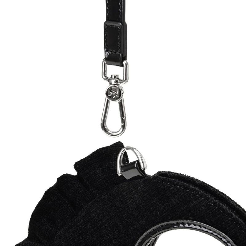 ショルダーストラップはエナメル牛革製。フックで簡単に取り外しできるので、気分やシーンに合わせて持ち方のアレンジを楽しめます。