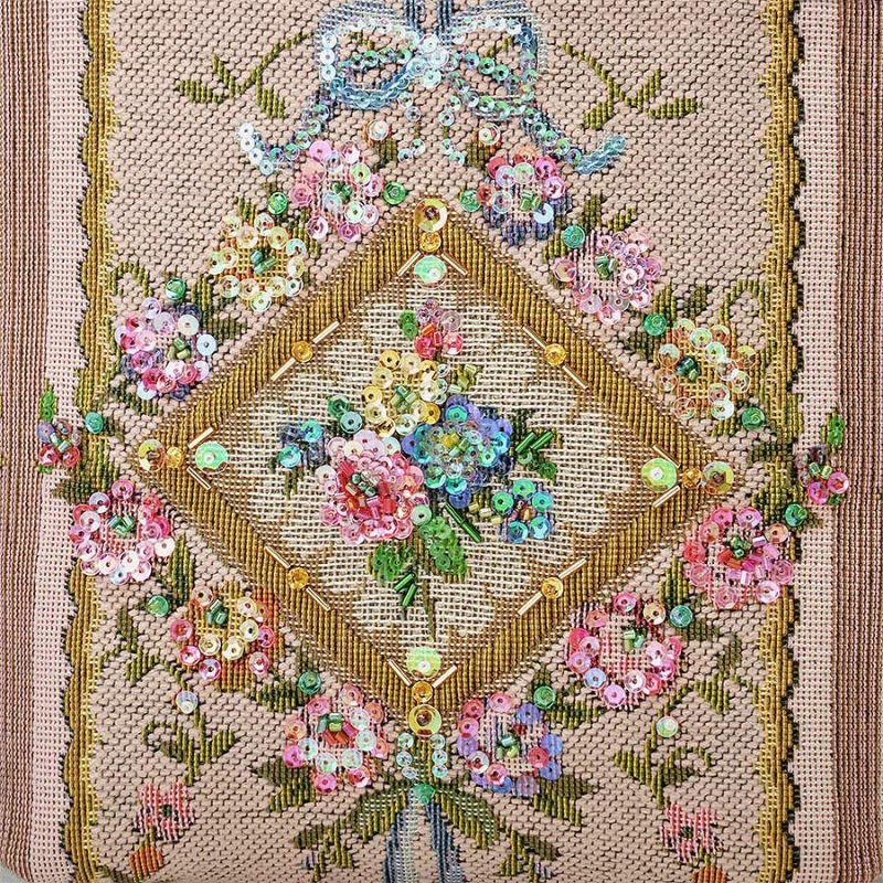 ロマンティックな織柄にビーズやスパンコールを丁寧に散りばめて、可愛らしく華やかに仕上げました。