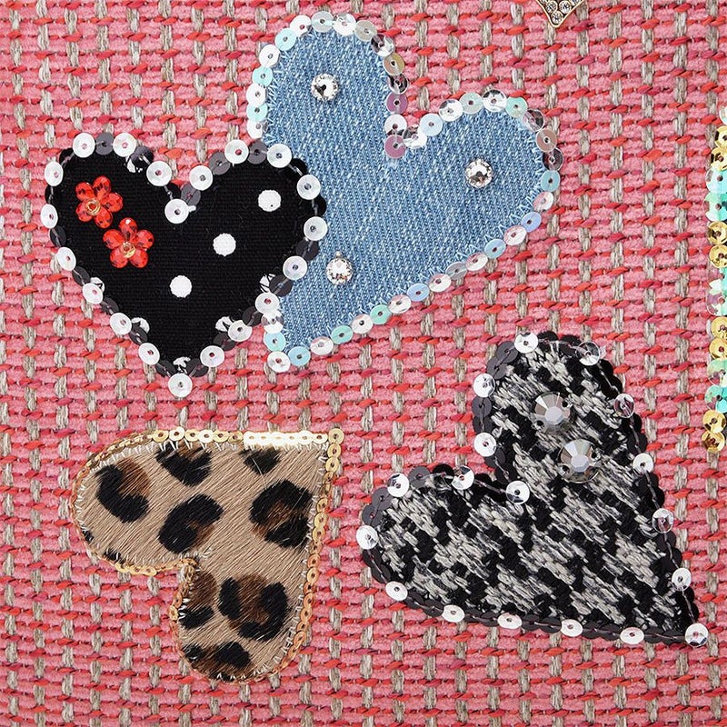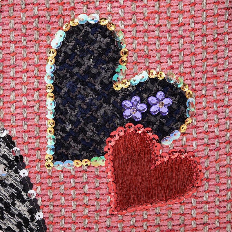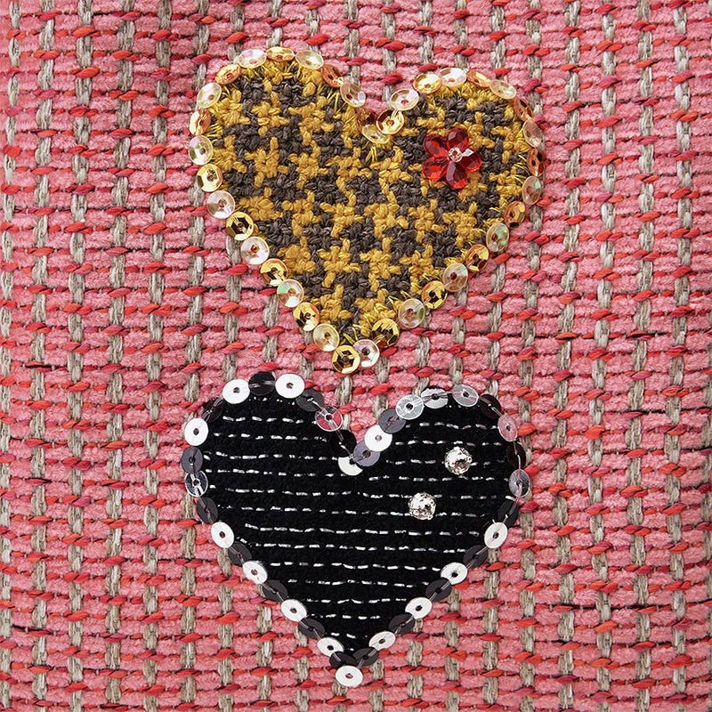 スペイン製のツイード生地に、異素材のハートをポップにアップリケ♪