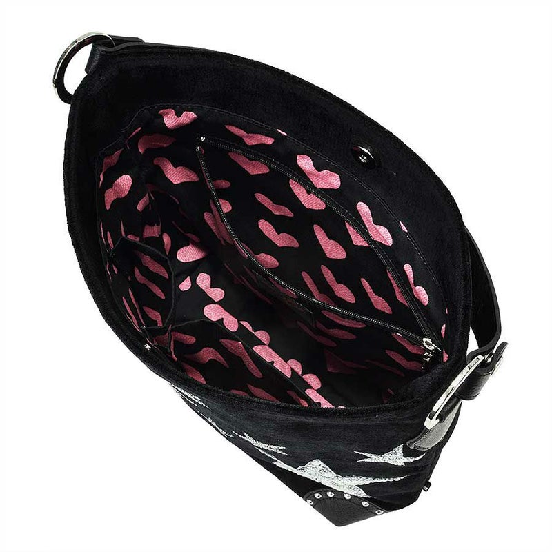 裏地はブラック×ピンクハートのプリント生地でキュートさもプラス。