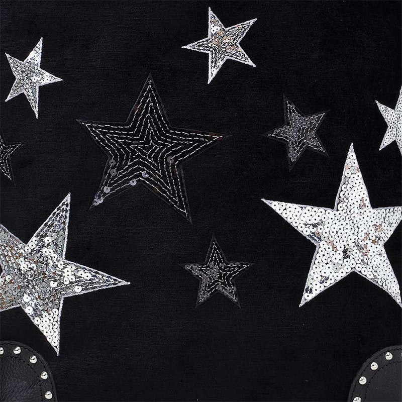 手触りの良いトルコ製の生地に、スパンコールが放つ光を計算しながら、スター型に手刺繍で敷き詰めました。