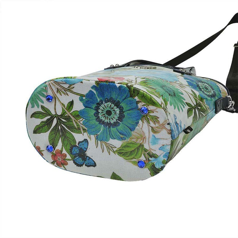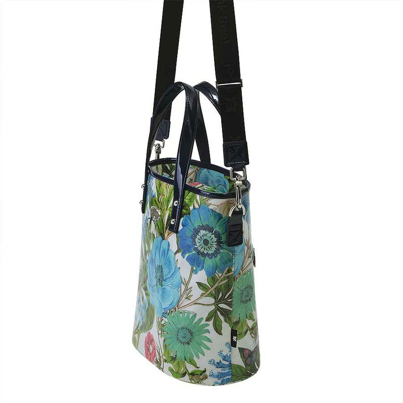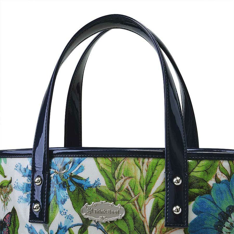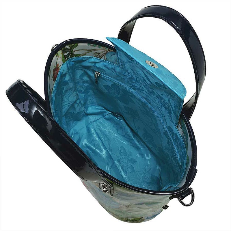 内側は鮮やかなブルーの花柄ジャカード織生地を合わせて爽やかに。