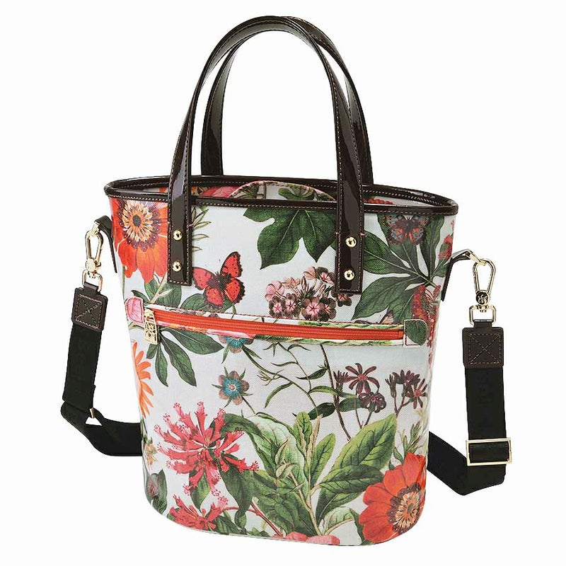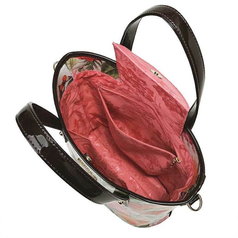 内側は鮮やかなコーラルの花柄ジャカード織生地を合わせて爽やかに。