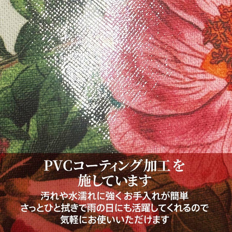 このコットン100%の生地にPVCコーティングを施しているので、汚れてもさっとひと拭きで水濡れにも強く、雨の日も安心。