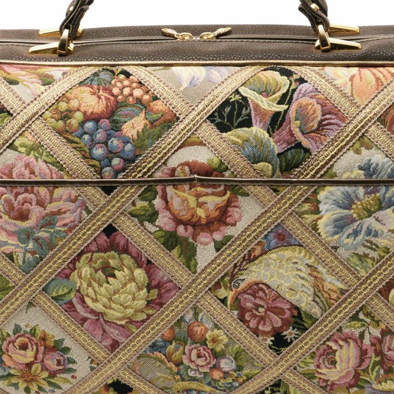 | 素材 | | 表地原産国 | イタリア | | 表地 | ビスコース70%・アクリル21%・ポリエステル7%・ナイロン2% | | 裏地 | ポリエステル100% | | ハンドル | 合成皮革 | | その他 | - | | サイズ(約) | | 本体(突起部を除く最大) | H 26 × W 46 × D 20 cm | | ハンドル立ち上がり | 11.5 cm/- | | ショルダーストラップ長さ | -/- | | 重さ | 920g | | | 仕様 | | 開口部 | ダブルファスナー式 | | メイン室 | 1 /- | | 内側 | ファスナー付ポケット×1・オープンポケット×2(内携帯電話サイズ×1) | | 外側 | オープンポケット×2 | | ハンドル | 2 /- | | 底鋲 | 5 | | その他 | 作品により柄の出方が異なる場合があります | | 補足情報 | | - | |