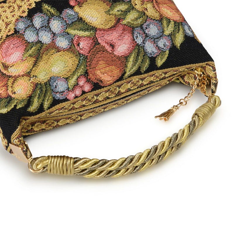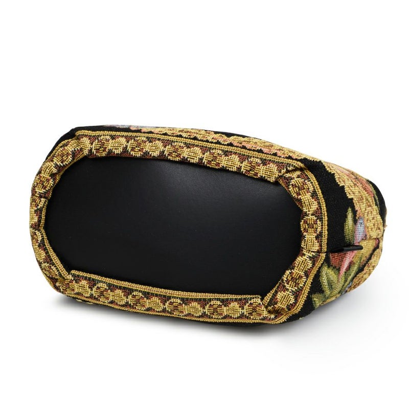 | 素材 | | 表地原産国 | イタリア製 | | 表地 | ビスコース68%、アクリル28%、ポリエステル2%、ナイロン2% | | 裏地 | ポリエステル100% | | ハンドル | ポリエステル70%、コットン30% | | その他 | - | | サイズ(約) | | 本体(突起部を除く最大) | H 10 × W 20 × D 10 cm | | ハンドル立ち上がり | 10 cm/- | | ショルダーストラップ長さ | -/- | | 重さ | 130g | | | 仕様 | | 開口部 | ファスナー式 | | メイン室 | 1 /- | | 内側 | - | | 外側 | - | | ハンドル | 1 /- | | 底鋲 | - | | その他 | 作品により柄の出方や装飾が異なる場合があります | | 補足情報 | | - |