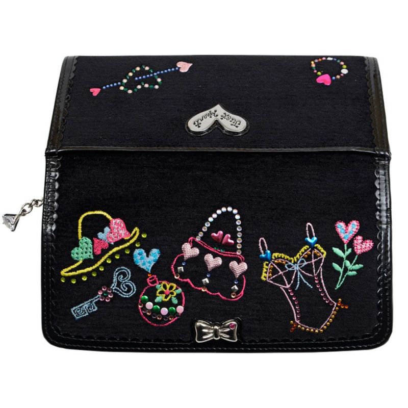 艶感のあるトルコ製のブラック起毛生地に、細いタッチのミシン刺繍でプリンセスのお洒落アイテムを表現しました。