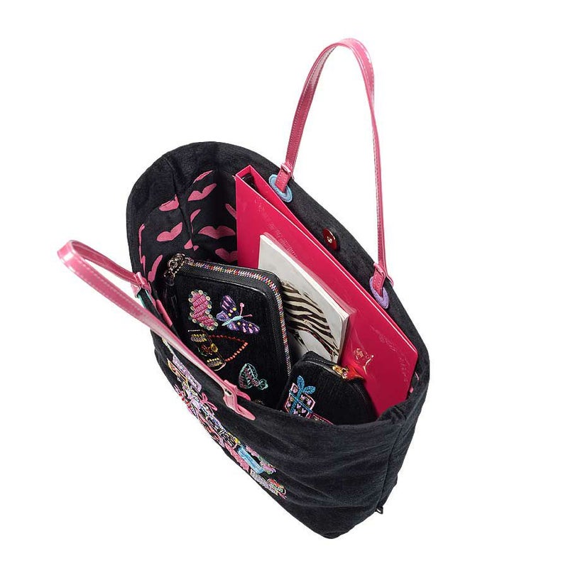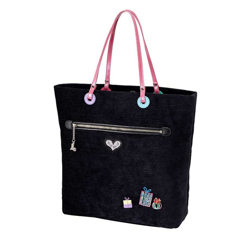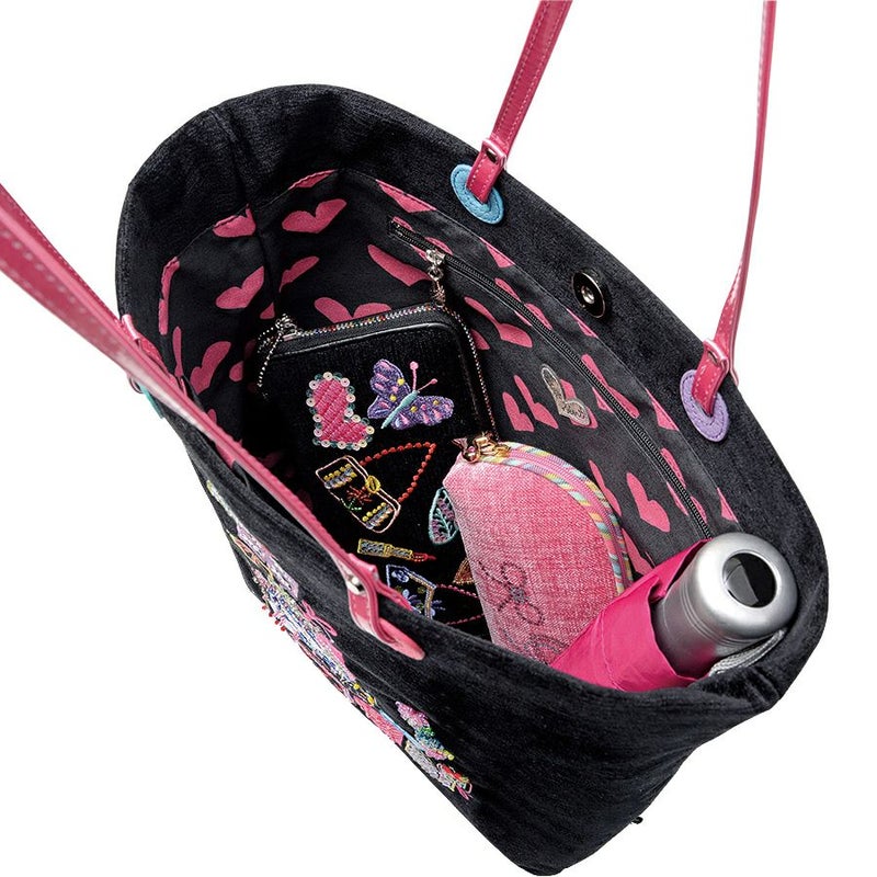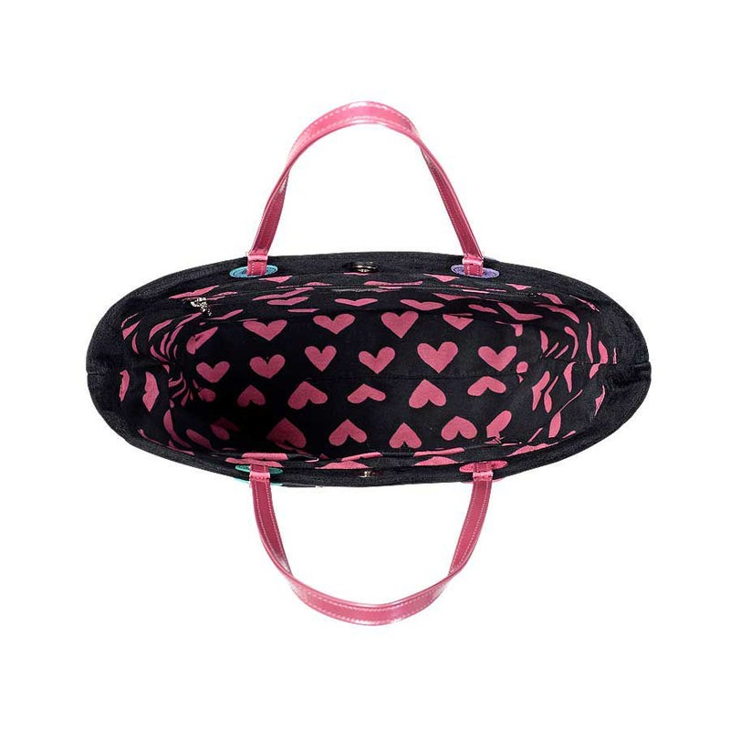 裏地はキュートなブラック×ピンクハートのプリント生地。