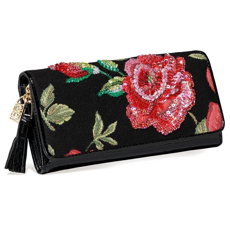 大輪のバラがいっぱいに広がる迫力あるイタリア製のゴブラン織柄の上から、ビーズ、スパンコールを贅沢に刺繍。