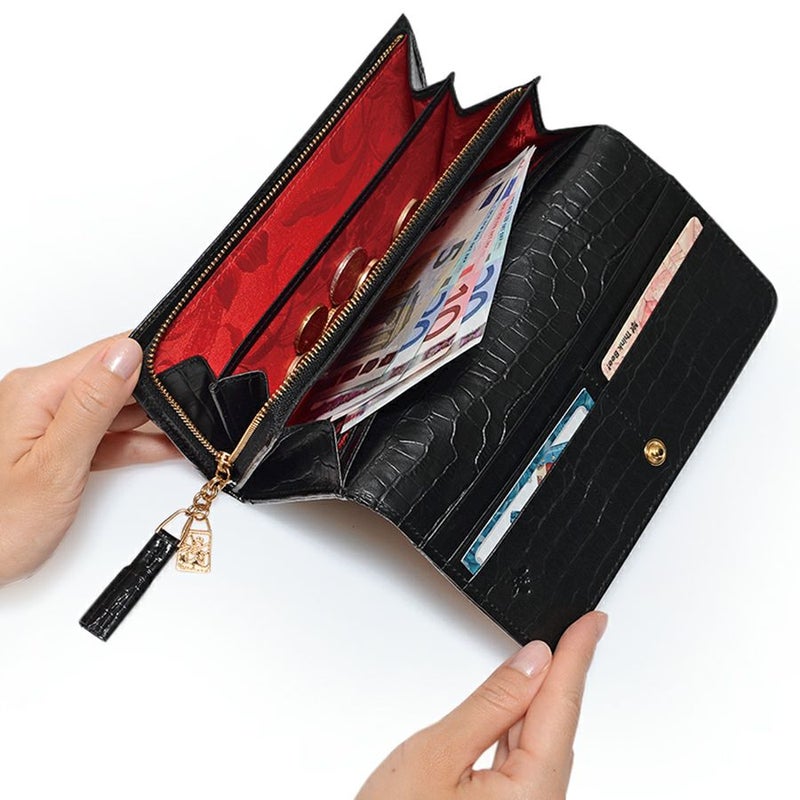 充実の収納力で機能性に優れた長財布。L型ファスナー式小銭入れは大きく開いて中身が見やすい仕様。