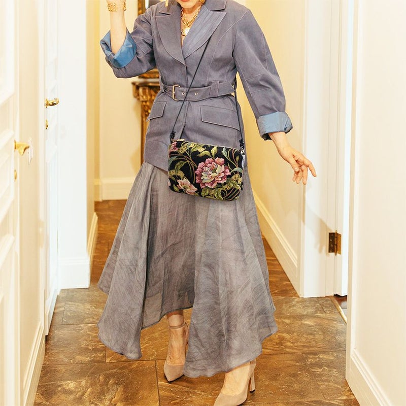 イタリア製、ゴブラン織生地を使用。様々なブーケをロープが曲線を描きながら繋ぐ繊細な柄行きが、華やかな中にもしっとりとした上品さを醸し出しています。