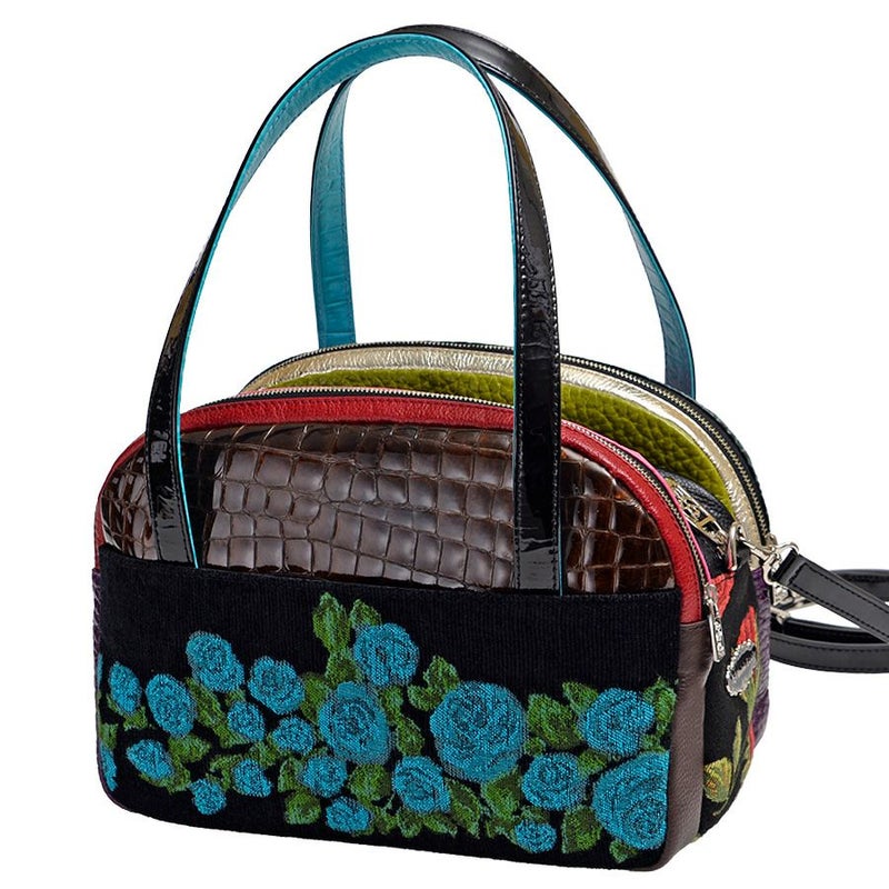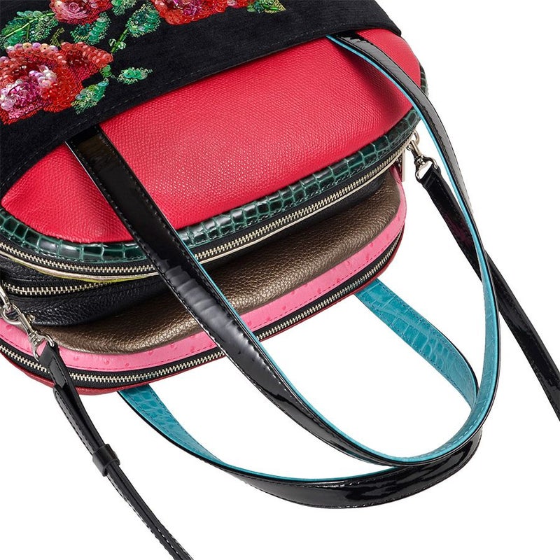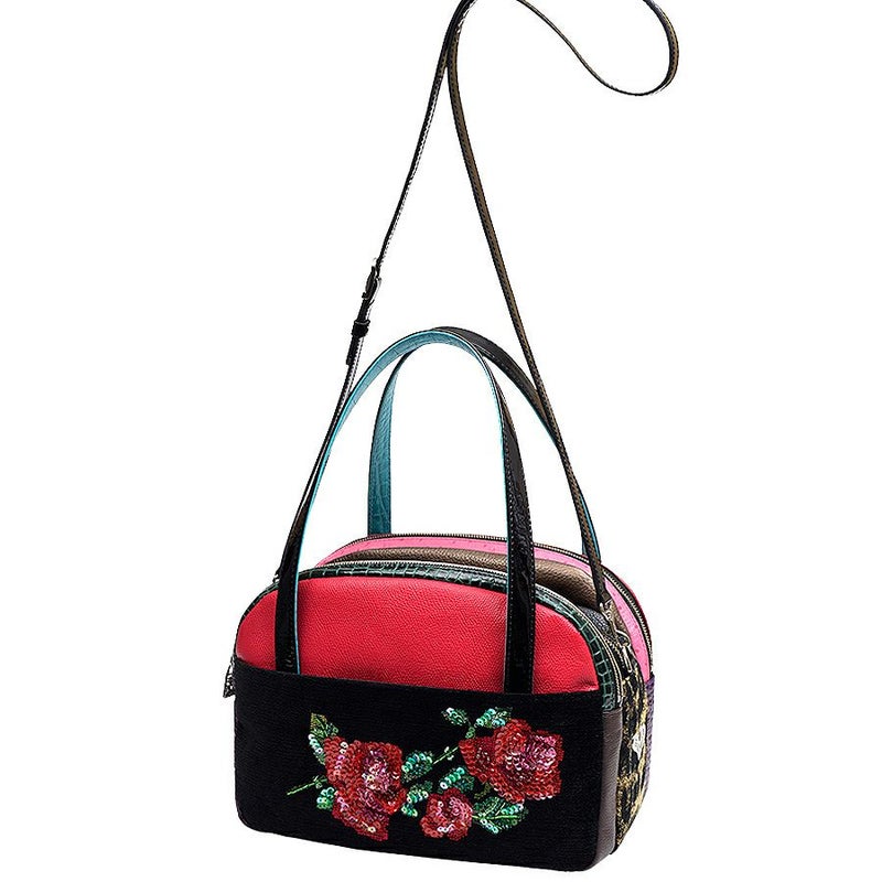 世界各地から集めた素材を厳選。生地4種、クロコやオーストリッチ型押し、シュリンク等のレザー10種を使用。素材の持ち味を生かした配色、究極の組み合わせを追究しました。
