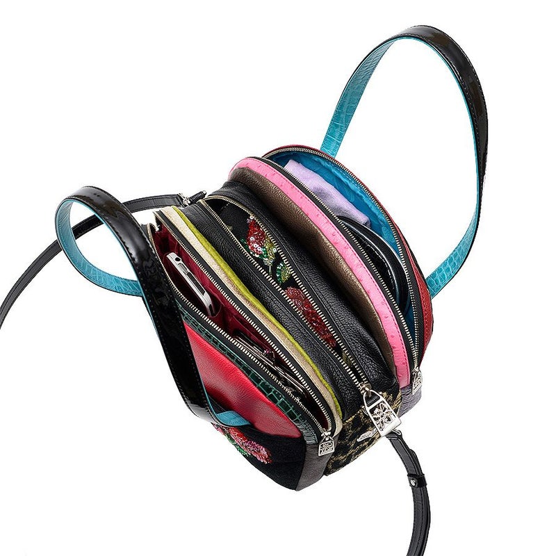 計算された配色に合わせて、パーツごとに糸の色を変更するなど、細部にまでこだわりが詰まったバッグです。