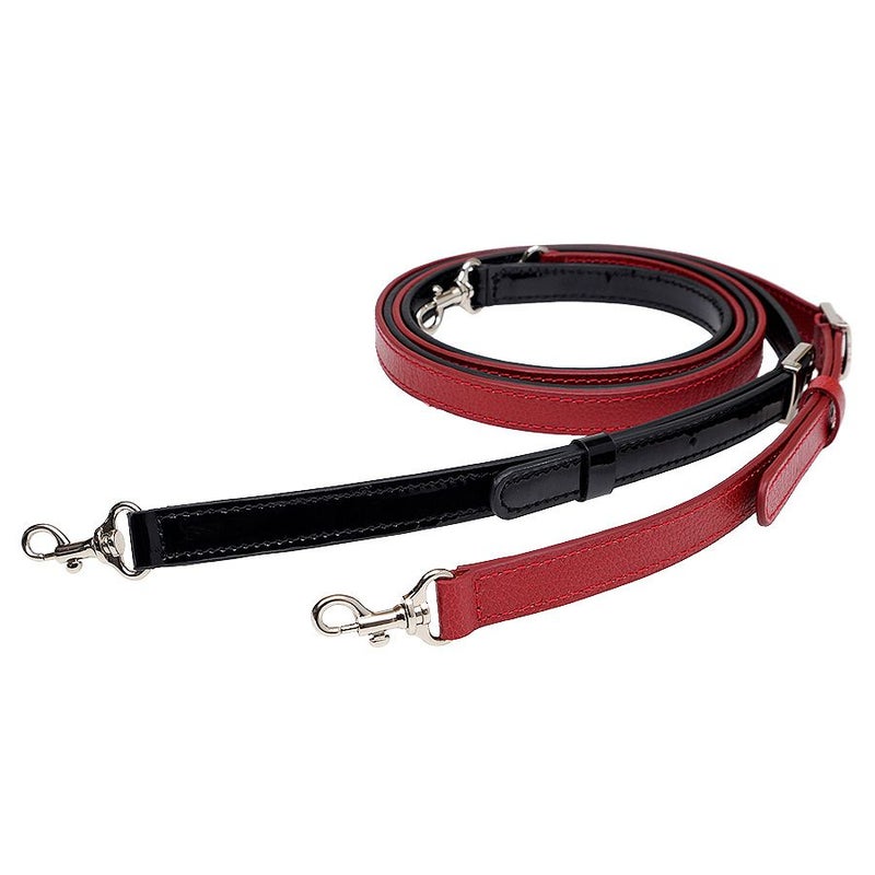 付属のショルダーストラップは、黒と赤の2種類をご用意。長さが4段階に調節できるので、肩掛けや斜め掛けも自在です。