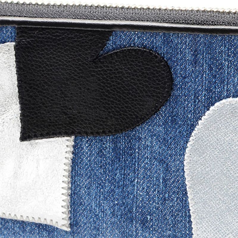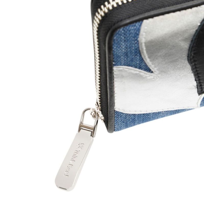Made in Japanとして世界的に定評のある岡山デニムをベースに、デニムと異素材のハートをアップリケしたラウンド財布。
