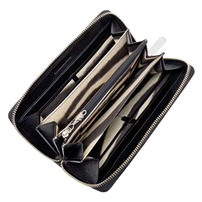 裏地にクールなゼブラのプリント生地を使用することで辛口な仕上がりに。ジャバラで大きく開くので、中身が見やすい仕様。