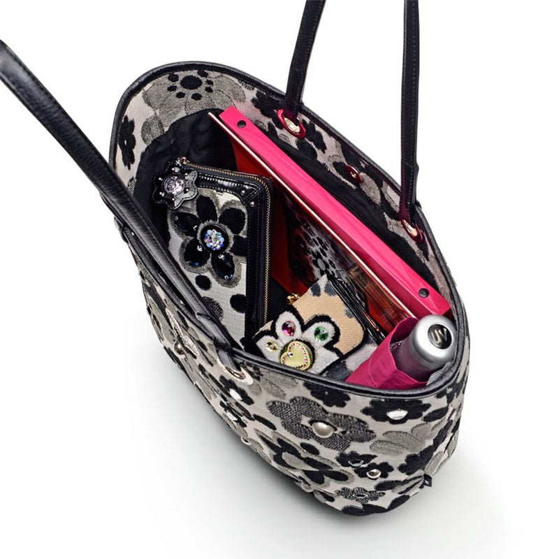 大きめサイズのトートでありながら、シックな色使いと上品な装飾でキレイめコーデにも活躍します。
