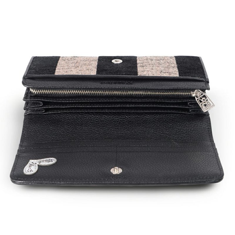フラップを開けると、落ち着いたブラックの内装。手馴染みの良い牛革シュリンクを配してシックにまとめました。