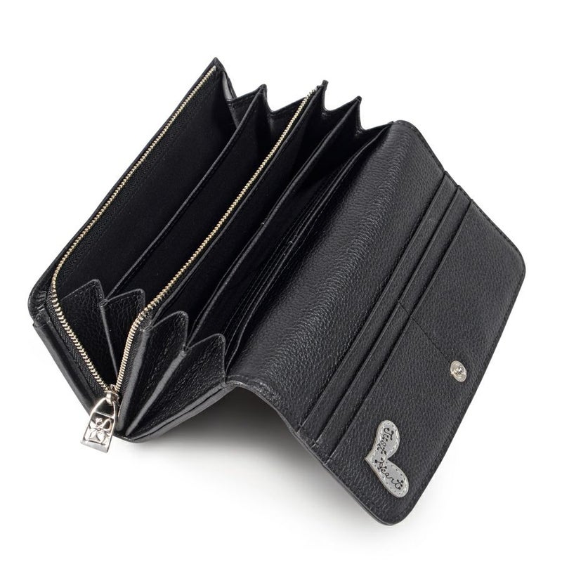 L型ファスナー式小銭入れは、大きく開いて中身が見やすく出し入れが簡単です。