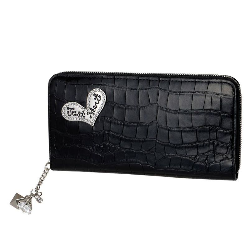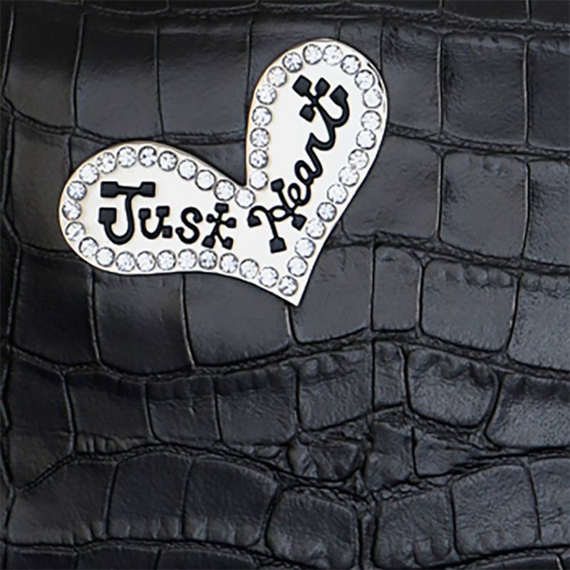 牛革の質感を活かして、装飾はJust Heartロゴ入りプレートのみでシンプルに。縁取りのラインストーンが煌めくアクセントになっています。