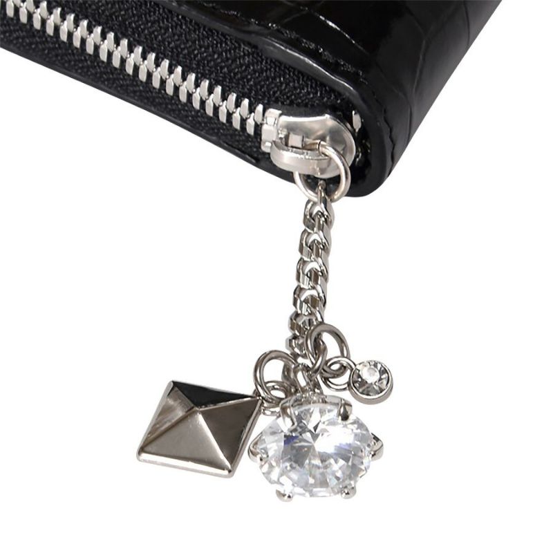中央のファスナー式小銭入れの引手にもスワロフスキー・クリスタル付き。