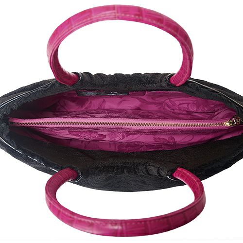 肩に掛けやすい長めのハンドルは、上質なクロコ型押し牛革を使用しているので高級感があります。
