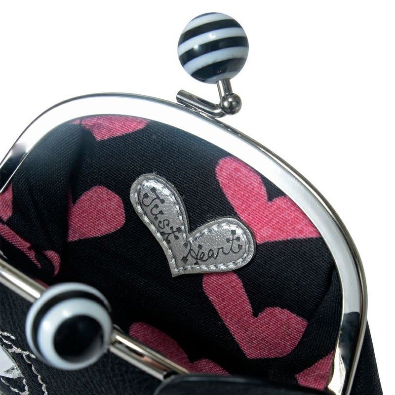 裏地はキュートなハート柄で、内側にもレザーのロゴプレート。