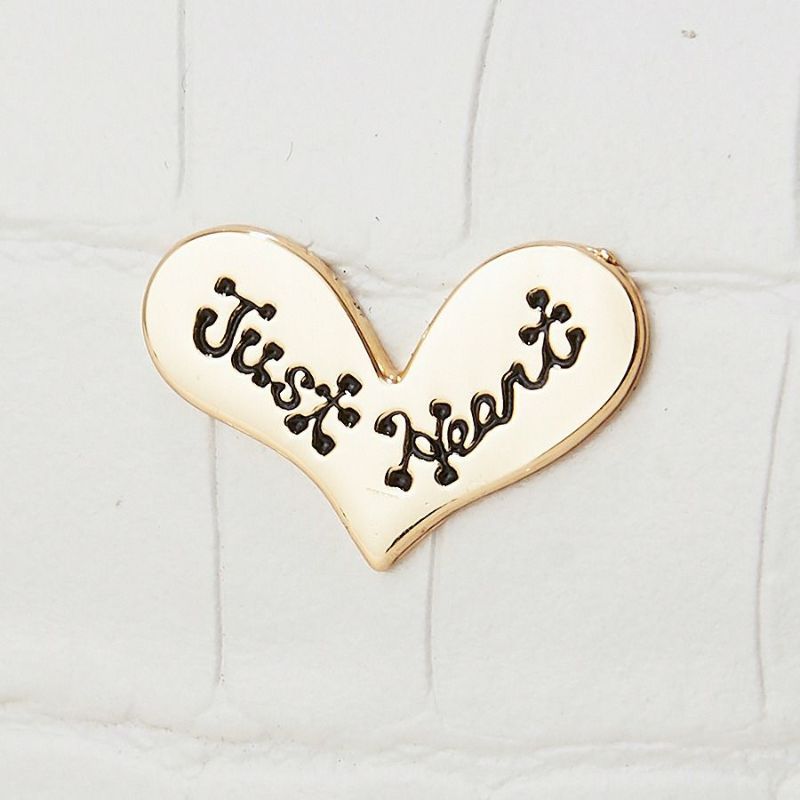 前面から背面へと連なる大きなハートの装飾が印象的なラウンド財布。