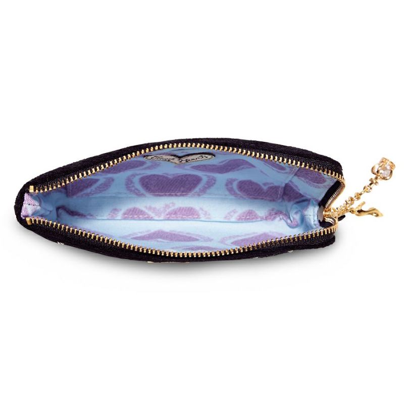裏地は、ブルー地にパープルのハートプリント生地で爽やかに。