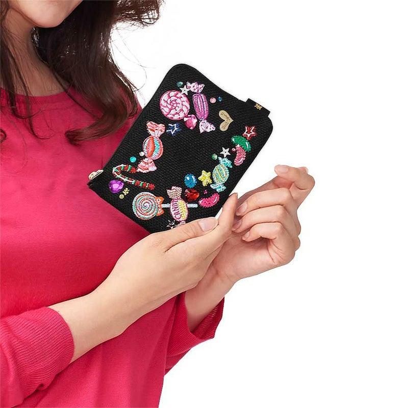 薄型のスクエアタイプで、バッグに入れてもかさばりにくく、コンパクトやリップなど、メイク直しの必需品を入れておくのにちょうど良いサイズ感。
