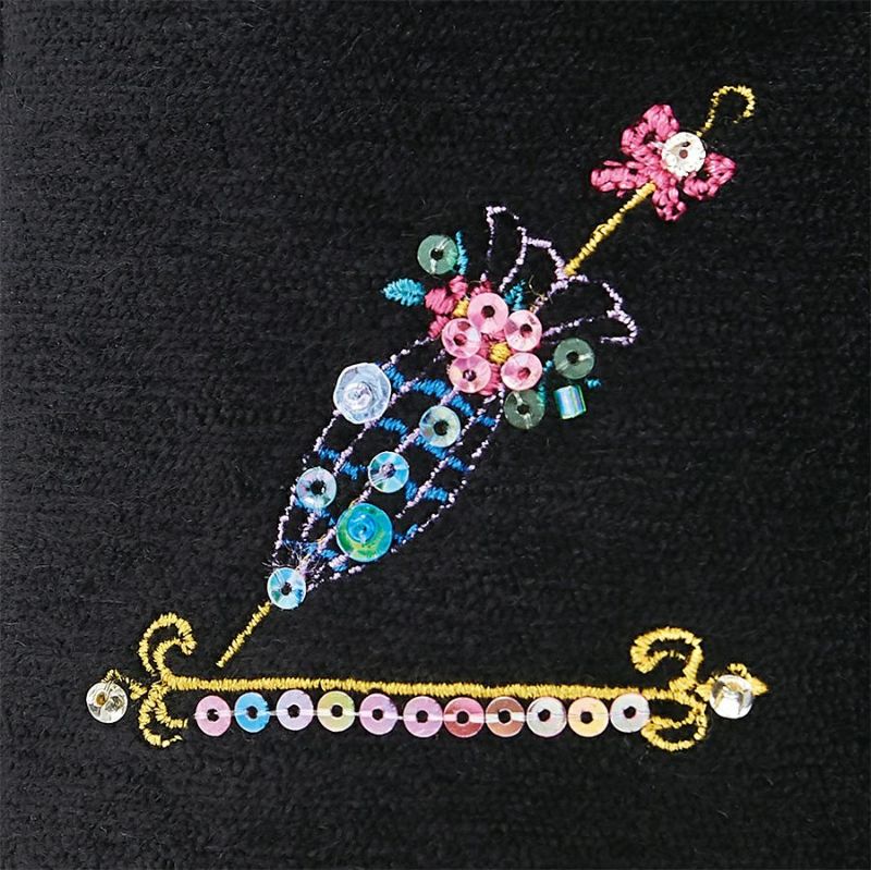 博子・クレメールがパリでスケッチしたドレスやバッグ、小物の数々。そこから厳選したアイテムで構成した、夢のブティックを華やかな刺繍で表現し、ビーズやスパンコールをデコレーション。