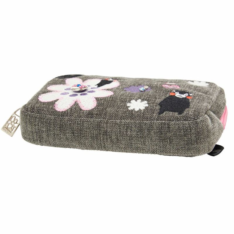 素材 | 表地原産国 | イタリア | 表地 | ポリエステル100% | 裏地 | ポリエステル100% | 付属 | - | その他 | ボタン・スパンコール・Swarovski Crystals | サイズ(約) | 本体(突起部を除く最大) | H 11.5 × W 16 × D 3.5 cm | ハンドル立ち上がり | -/- | ショルダーストラップ長さ | -/- | 重さ | 73g | | 仕様 | 開口部 | ファスナー式 | 内側 | オープンポケット×1 | 外側 | - | その他 | 作品により装飾が異なる場合があります表面片側にスパンコール刺繍、ボタンなどの装飾 | 補足情報 | くまモン許諾番号:c2010 kumamoto pref. kumamon #K33195 | |