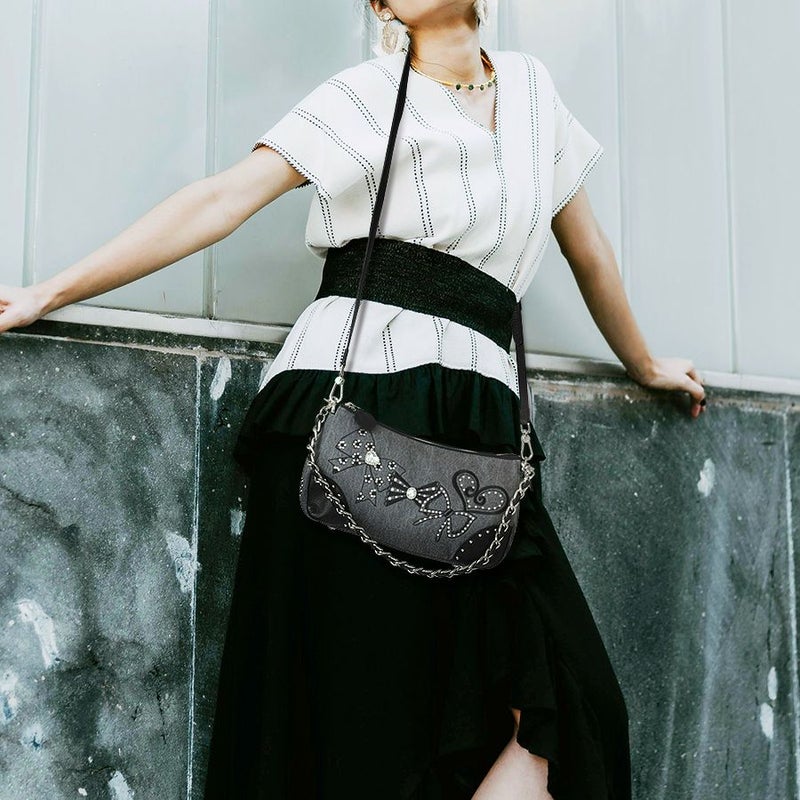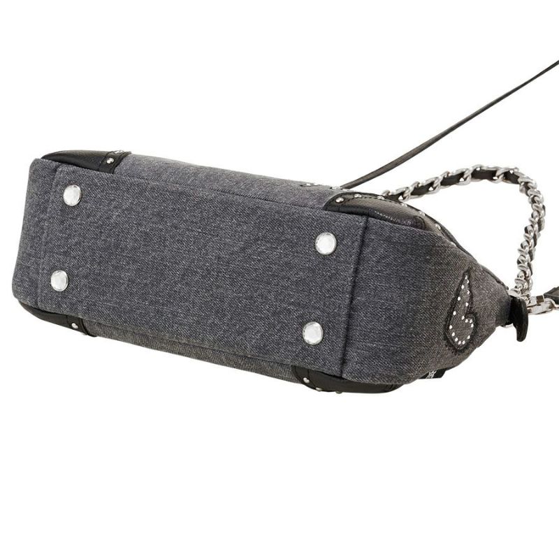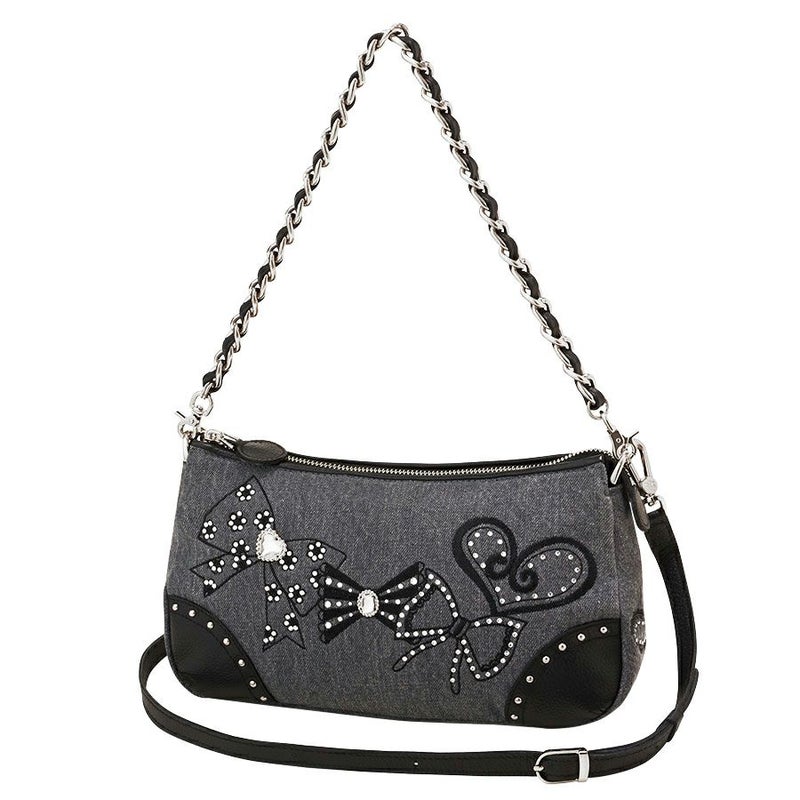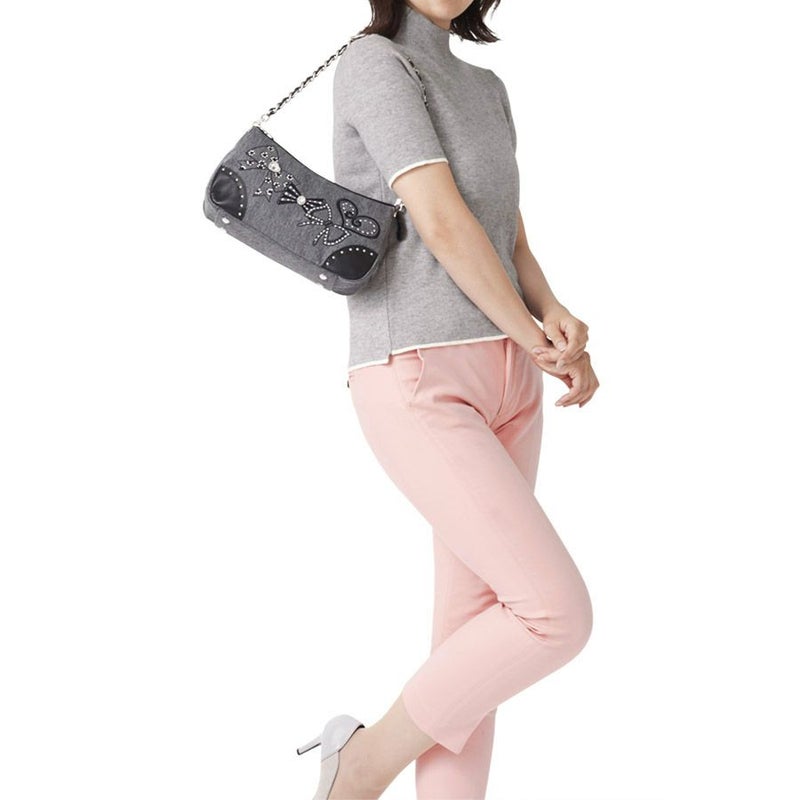 ブラックレザーを通したチェーンハンドルは、ストラップ使用時につけたままにしておいても、デザインのアクセントになります。 シーンに合わせた使い方が楽しめる用途の広いバッグです。