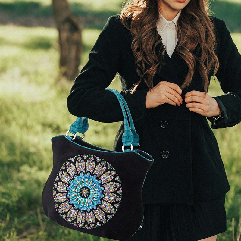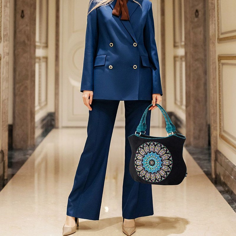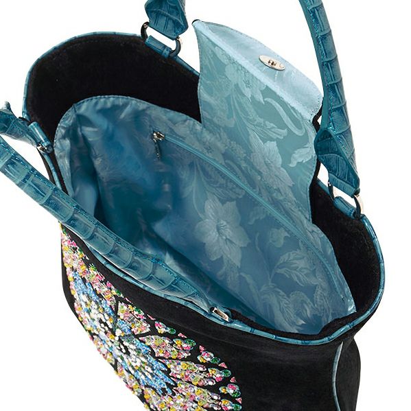 ハンドルは刺繍とベストマッチな高級感のあるブルーのクロコ型押し牛革を使用しています。