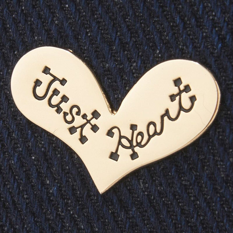 デニムに浮き立つハートのアップリケ