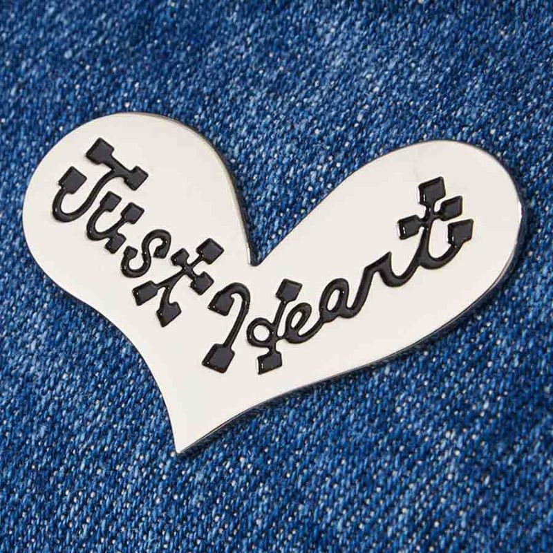 タックを取ってふんわりさせたフォルムやハートモチーフの甘さによって、ワイルドな辛口デザインも絶妙な甘辛バランスに。