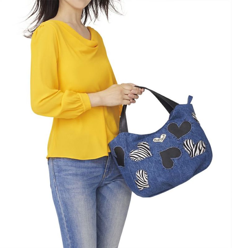切りっぱなしのハートの縁にジグザグステッチを走らせて、パンチの効いた表情に仕上げています。