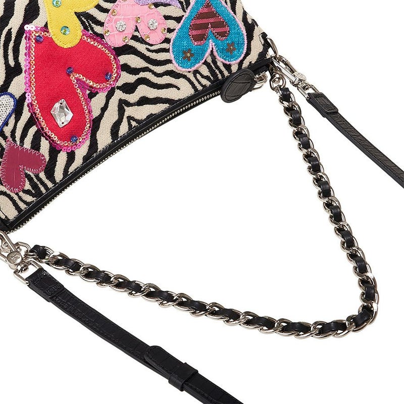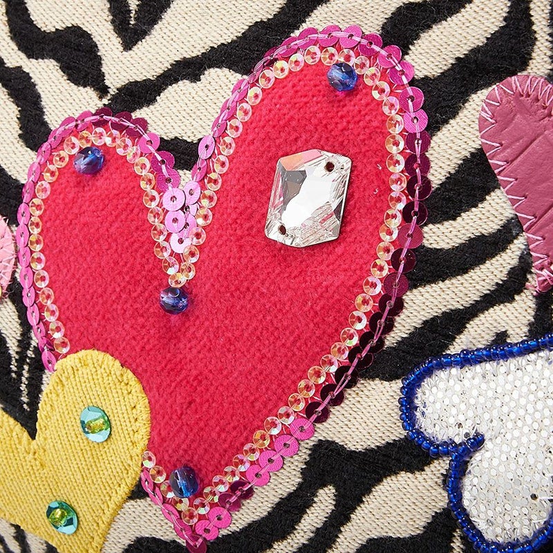 イタリア製ゼブラ柄のジャカード織生地に、恋のワクワク感を、沢山の異素材ハートモチーフを贅沢に組み合わせて表現しました。
