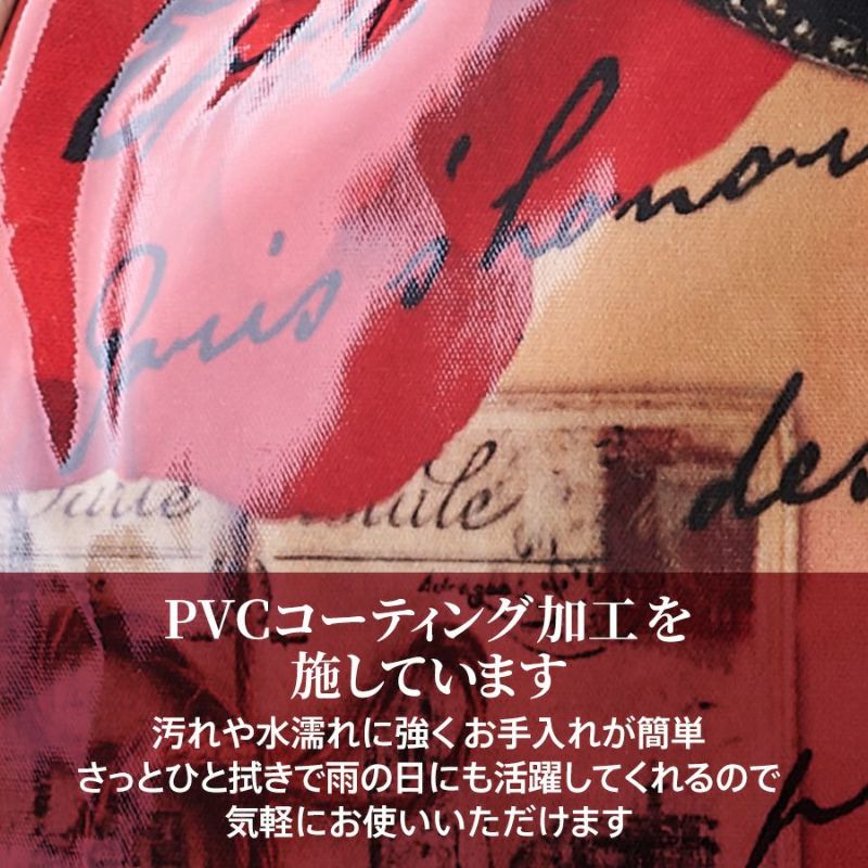 | 素材 | | 表地原産国 | 日本 | | 表地 | コットン100%(PVCコーティング) | | 裏地 | ポリエステル100% | | ハンドル | 表地に同じ | | その他 | - | | サイズ(約) | | 本体(突起部を除く最大) | H 20 × W 36× D 20 cm | | ハンドル立ち上がり | 20cm/- | | ショルダーストラップ長さ | - | | 重さ | 380g | | | 仕様 | | 開口部 | マグネットホック式 | | メイン室 | 1 /- | | 内側 | ファスナー付ポケット×1・オープンポケット×2 | | 外側 | - | | ハンドル | 2/- | | 底鋲 | - | | その他 | 作品により柄の出方や装飾が異なる場合があります | | 補足情報 | | - | |