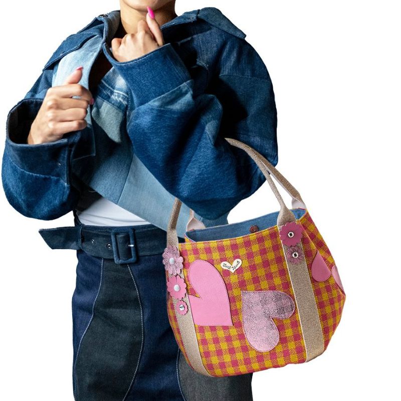 素材 | 表地原産国 | イタリア | 表地 | コットン53%・ビスコース30%・麻17% | 裏地 | コットン又はポリエステル100% | ハンドル | ラメテープ(ポリプロピレン他)・牛革 | その他 | - | サイズ(約) | 本体(突起部を除く最大) | H 26 × W 42 × D 24 cm | ハンドル立ち上がり | 18 cm/- | ショルダーストラップ長さ | -/- | 重さ | 610g | | 仕様 | 開口部 | マグネットホック式 | メイン室 | 1 /内側にフック付 | 内側 | ファスナー付ポケット×1・オープンポケット×2 | 外側 | - | ハンドル | 2 /- | 底鋲 | 4 | その他 | 作品により装飾が異なる場合があります表面にアップリケ装飾 | 補足情報 | - | |